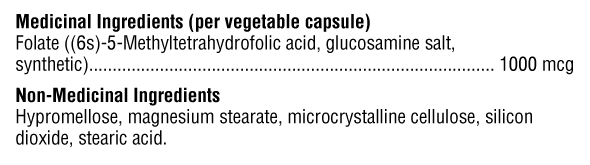 Malgré les recherches montrant que l'acide folique et le 5-MTHF ont une biodisponibilité équivalente et qu'une supplémentation avec de fortes doses d'acide folique peut "forcer" sa conversion en une forme plus active, le 5-MTHF est souvent la forme préférée pour reconstituer le folate. Cela est principalement dû à l'insuffisance de l'acide folique pour augmenter les taux plasmatiques lorsque certaines conditions sont présentes. Dans cette formule, le 5-MTHF est fourni sous forme de Quatrefolic®, le sel de glucosamine du 5-MTHF. Il a été prouvé que Quatrefolic a une plus grande stabilité, solubilité et biodisponibilité que les formes de sel de calcium du 5-MTHF. Le folate est stocké dans les globules rouges, où les niveaux se sont avérés plus élevés après une supplémentation en 5-MTHF par rapport à l'acide folique et au placebo. Par exemple, les patients ayant reçu 5 mg de 5-MTHF ont présenté des taux plasmatiques 700 % plus élevés que les patients ayant reçu de l'acide folique.