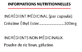 Améliore la performance au cours des séances répétées et brèves d'activité physique très intense (p.ex. sprints, sauts, entraînement contre résistance) en augmentant le taux d’énergie du muscle.