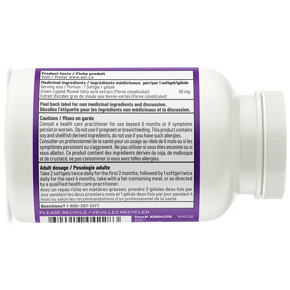 Acides Gras de Moule Verte contient des acides gras oméga-3 extraits de la moule verte de Nouvelle-Zélande, ce qui présente des avantages uniques pour l’arthrose et la polyarthrite rhumatoïde que l’on ne retrouve pas avec les suppléments oméga-3 standards. Acides Gras de Moule Verte d’AOR est une préparation d’acide gras concentrée, ce qui le rend beaucoup plus puissant que les produits à base de moules séchées ordinaires.