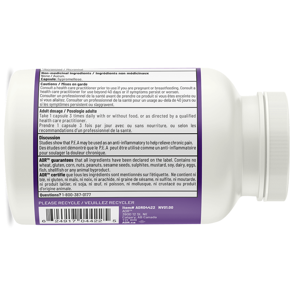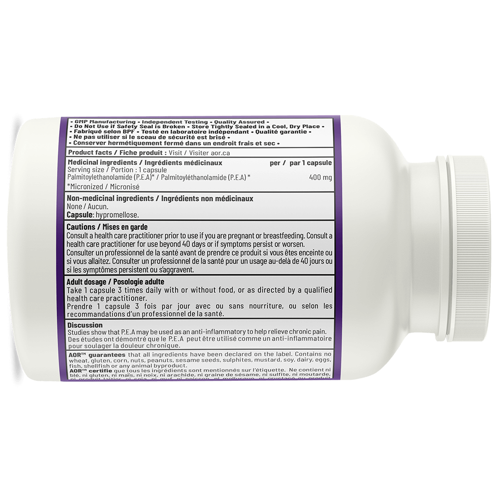 AOR montre la voie en transformant la recherche impressionnante et évolutive sur les effets positifs du PEA sur le système endocannabinoïde humain afin de mettre à la disposition de sa valeureuse clientèle une formule thérapeutique sûre pour combattre la douleur chronique et l’inflammation systémique. Active PEA d’AOR est produit en Italie et obtenu à partir d’une huile de palme malaisienne écologiquement durable, purifiée et traitée de manière responsable pour une biodisponibilité optimale.