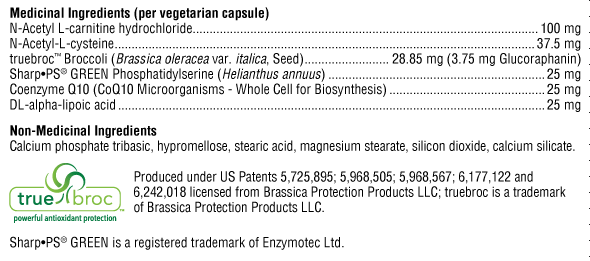 La forme brevetée du composé phytochimique du brocoli appelé sulforaphane glucosinolate (SGSTM) est un ingrédient clé d'Active Sustain. Des recherches approfondies démontrent que lorsque le SGS est décomposé en sulforaphane (sa forme active), il régule positivement et en toute sécurité le système Nrf2, améliore la production d'antioxydants et active les enzymes vitales de détoxification de phase II. Ce processus offre une protection contre les toxines courantes. et xénobiotiques.