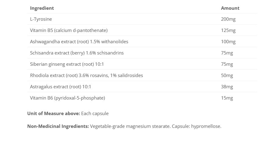 Diverses herbes sont également incluses dans Adrenal-Matrix pour leur capacité à équilibrer le cortisol, l'humeur, la cognition, la résistance au stress et l'immunité. Ces herbes sont considérées comme "adaptogènes", ce qui signifie qu'elles sont capables d'aider le corps à s'adapter au stress. Par exemple, Withania somnifera a démontré sa capacité à abaisser les niveaux de cortisol sanguin et à augmenter les scores de qualité de vie chez les adultes souffrant de stress chronique. La recherche a montré qu'Eleutherococcus senticosus peut améliorer la qualité du travail dans des circonstances stressantes et augmenter la capacité de s'adapter à des conditions physiques défavorables. Rhodiola rosea, Astragalus membranaceous et Schisandra chinensis complètent les herbes adaptogènes d'Adrenal-Matrix pour soutenir collectivement la réponse du corps au stress.