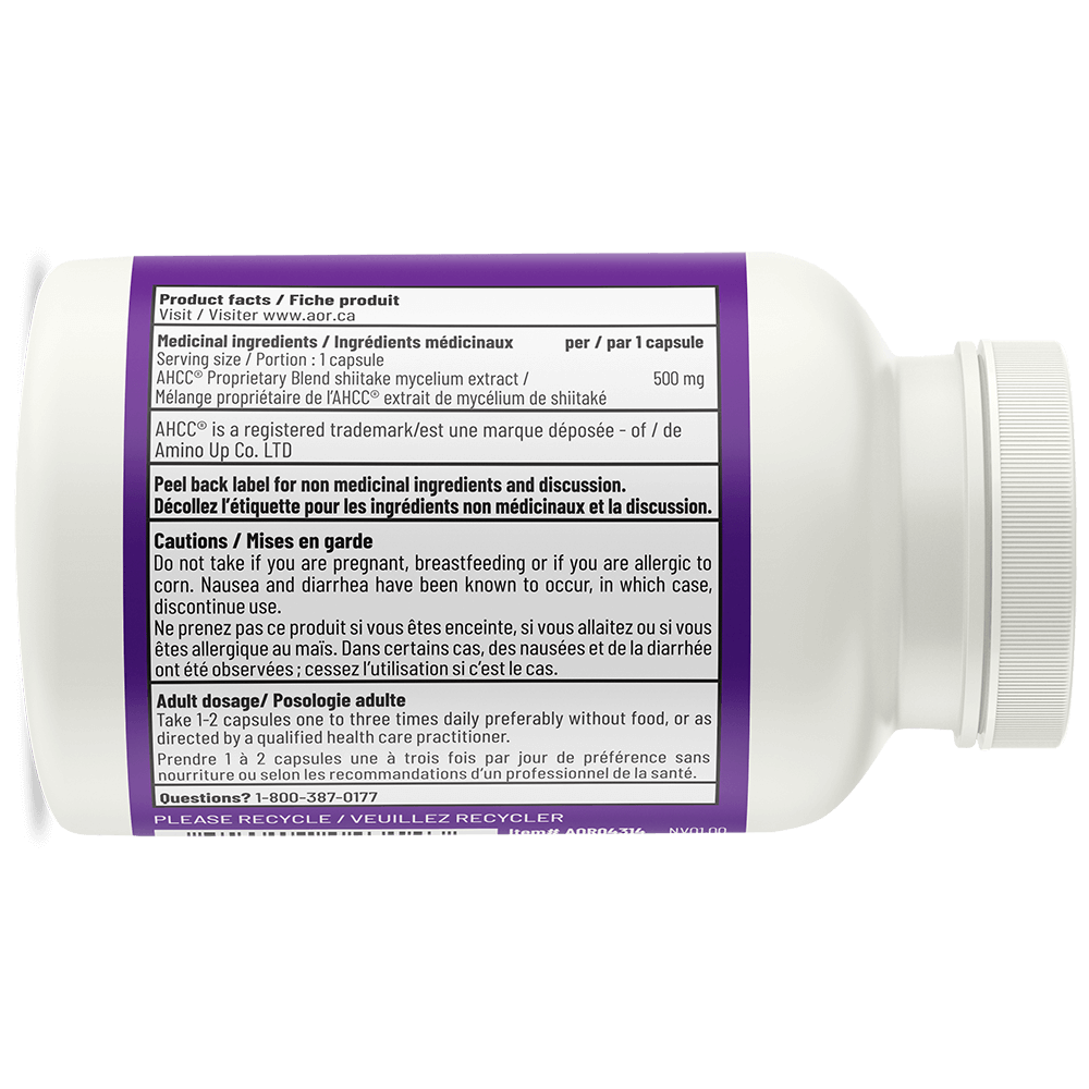 L’AHCC est un antioxydant et un immunomodulateur exceptionnel. L’AHCC d’AOR contient l’une des plus fortes doses des produits à bases d’AHCC disponibles sur le marché, avec le moins d’ingrédients additionnels possible. La formule de l’AHCC d’AOR en plus de ses autres ingrédients actifs, a été enrichie aux alpha-glucanes acétylés pour une biodisponibilité optimale.