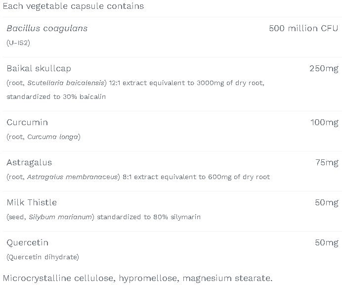 Scutellaire du Baïkal (racine, Scutellaria baicalensis) extrait 12:1 équivalent à 3000mg de racine sèche, standardisé à 30% de baicaline 250mg
