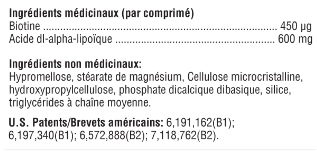 La biotine a été ajoutée parce que l'administration chronique d'acide lipoïque réduit les activités de la pyruvate carboxylase et de la bêta-méthylcrotonyl-CoA carboxylase in vivo en entrant en compétition avec la biotine.