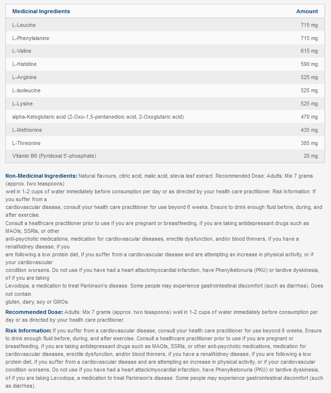 Amino Acid Supreme est une formule équilibrée d’acides aminés essentiels libres, à la saveur délicieuse de punch aux fruits et présentée sous forme de poudre pour un dosage pratique et efficace. Puisque ces acides aminés sont sous forme libre, ils peuvent être facilement absorbés et utilisés par le corps. Les acides aminés sont fondamentaux à plusieurs fonctions métaboliques de l’organisme. Une déficience en acides aminés peut être causée par des dysfonctionnements digestifs, par des facteurs nutritionnels ou reliés au mode de vie ou par des conditions qui affectent le bon fonctionnement de l’estomac, du pancréas, du foie ou de l’intestin grêle. Les acides aminés libres sont immédiatement disponibles à l’absorption et peuvent ainsi être utilisés par le métabolisme plus facilement et plus rapidement que les acides aminés contenus dans les protéines alimen- taires. Les personnes dont les fonctions digestives sont inadéquates, celles en rémission d’un traumatisme physique ainsi que celles ayant de la difficulté à consommer suffisamment de protéines complètes, telles que les personnes âgées, peuvent bénéficier de la prise d’acides aminés sous forme libre. L’alpha-cétoglutarate et la vitamine B6 (sous forme de pyridoxal-5-phosphate) sont inclus dans ce produit pour une absorption et une efficacité optimales.
