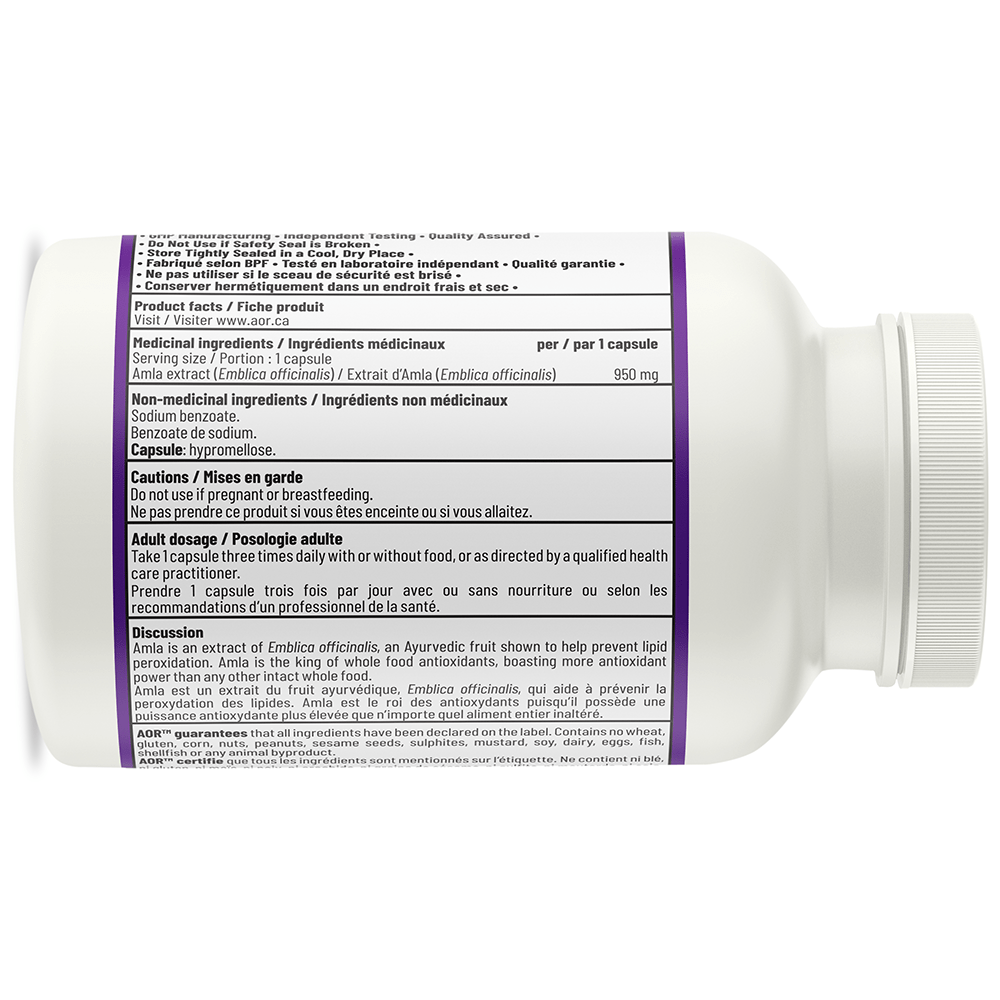 L’amla est un extrait d’Emblica officinalis, un fruit utilisé à des fins multiples en médecine ayurvédique depuis près de 5000 ans. Il est principalement utilisé en ayurveda comme rasayana ou composé antivieillissement, réduisant considérablement l’inflammation et combattant les maladies chroniques. Il est également utilisé pour traiter l’athérosclérose, le diabète, les douleurs articulaires et les problèmes oculaires. L’amla regorge de nutriments tels que les minéraux, les acides aminés, les polyphénols et les acides gras essentiels, et a été éprouvé pour exprimer une activité antioxydante plus forte que celle de la vitamine C puisqu’il contient des polyphénols.