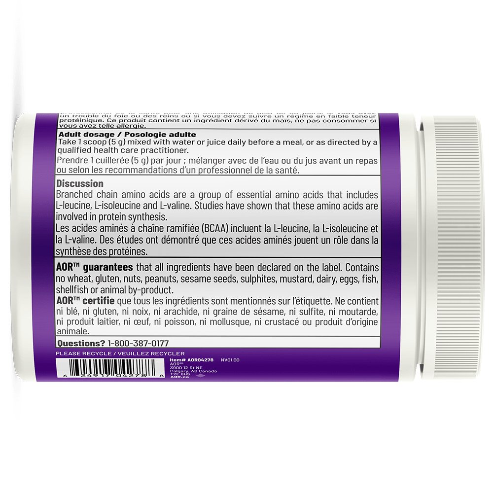 La formule du BCAA d’AOR offre une façon pratique d’ajouter d’importants acides aminés à chaîne ramifiée à votre alimentation. Contrairement aux autres acides aminés, la décomposition des BCAA s’effectue principalement dans le muscle et plus précisément au sein de la mitochondrie, les rendant extrêmement efficaces pour stimuler le développement du tissu musculaire. Le BCAA est obtenu à partir d’une source végétarienne.