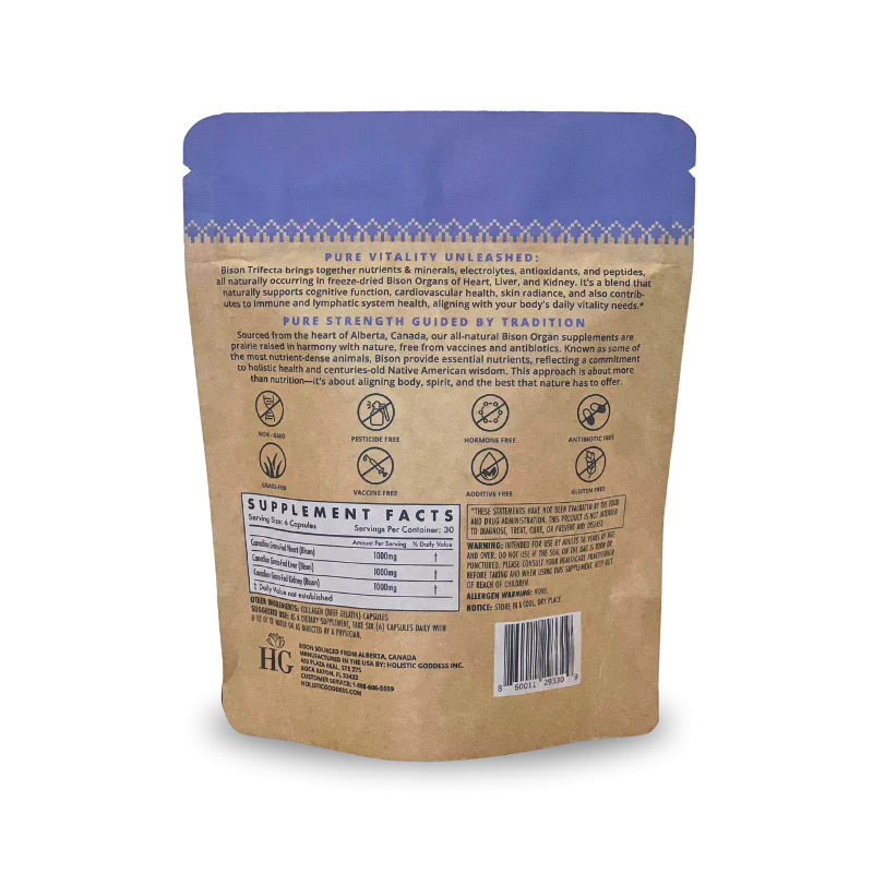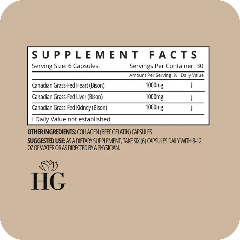 Ces organes proviennent de bisons nourris à l'herbe et finis, ce qui garantit que vous n'obtenez que le produit le plus pur et de la plus haute qualité. Notre foie est exempt d'hormones, d'OGM, de pesticides, d'agents de remplissage, d'agents d'écoulement et de stéarate de magnésium.