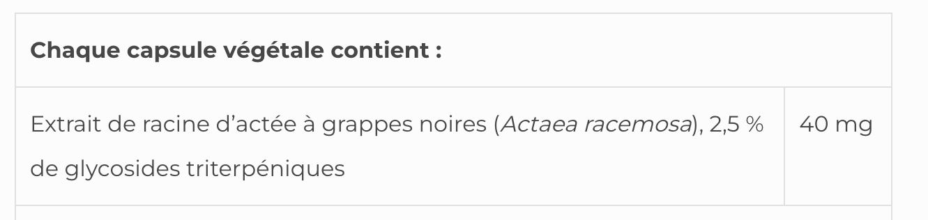 Black Cohosh SAP fournit un extrait d'actée à grappes noires de haute qualité pour soulager les symptômes de la ménopause et de la prémenstruation, et contribue à l'équilibre de l'humeur et à la gestion de la douleur.