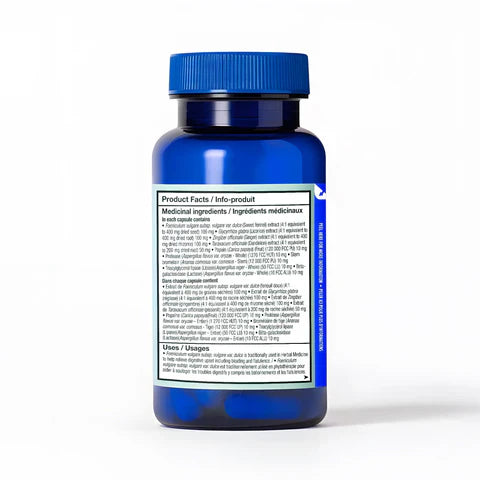 Cette formule anti-ballonnements deux-en-un utilise à la fois des enzymes digestives et des plantes médicinales qui facilitent la digestion pour améliorer la digestion sans ballonnements ni inconfort. Avec des enzymes qui favorisent la décomposition des protéines, des glucides et des graisses, ainsi que de la racine de gingembre, de la réglisse, du fenouil et du pissenlit, Bloaty vous permet de prendre vos repas à l'extérieur et à la maison sans l'inconfort ou la gêne causés par les ballonnements et les gaz.