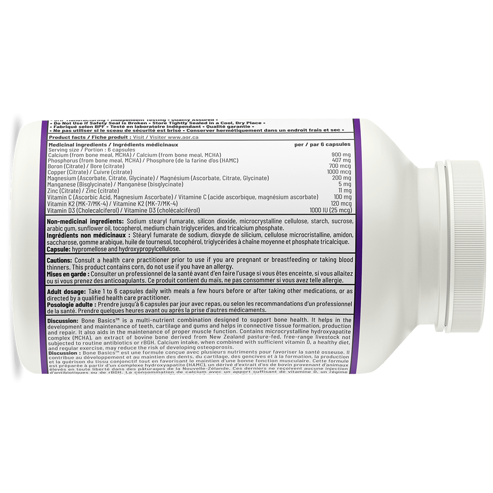 Bien plus qu’un simple supplément de calcium pour la santé des os, Bone Basics est une formule complète de construction osseuse qui fournit des éléments nutritifs essentiels pour maintenir l’équilibre minéral dans la matrice osseuse et pour soutenir la santé des articulations. Bone Basics est unique en ce sens qu’en plus d’aider à réduire la perte osseuse, il contribue au maintien voire à l’augmentation de la croissance des os.