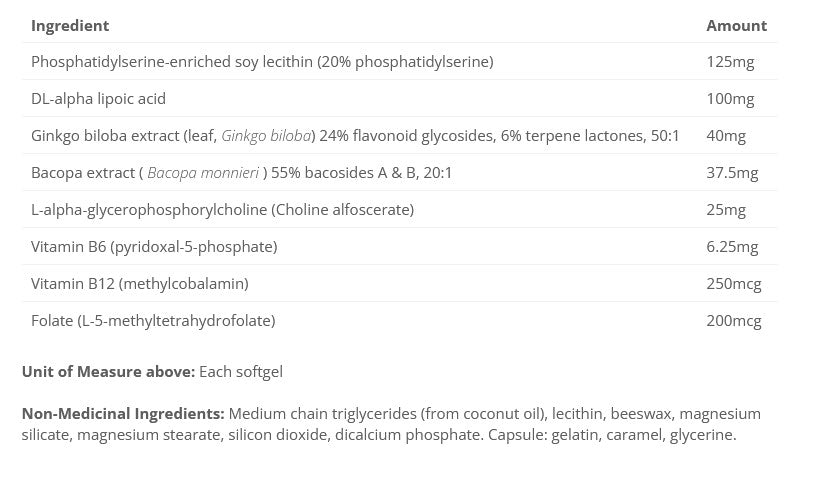 Comme beaucoup de gens le savent, le cerveau humain est principalement constitué de tissu adipeux et nécessite divers phospholipides pour fonctionner. En tant que tel, Brain Matrix comprend de la phosphatidylsérine, un composé liposoluble nécessaire à la communication entre les cellules du cerveau, appelées neurones. La recherche clinique a démontré que la phosphatidylsérine peut améliorer non seulement la libération d'acétylcholine, mais aussi la sérotonine, la dopamine et la noradrénaline. Il a été démontré que la phosphatidylsérine améliore l'apprentissage et le rappel chez les personnes souffrant de troubles de la mémoire liés à l'âge.