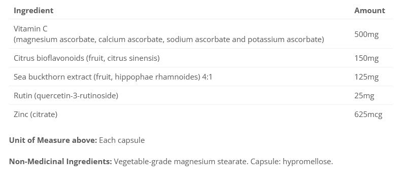 Deux capsules de C-Matrix fournissent 1000 mg d'acide ascorbique pur avec des quantités thérapeutiques de bioflavonoïdes d'agrumes, de rutine et d'extrait d'argousier pour une absorption et une biodisponibilité optimales.