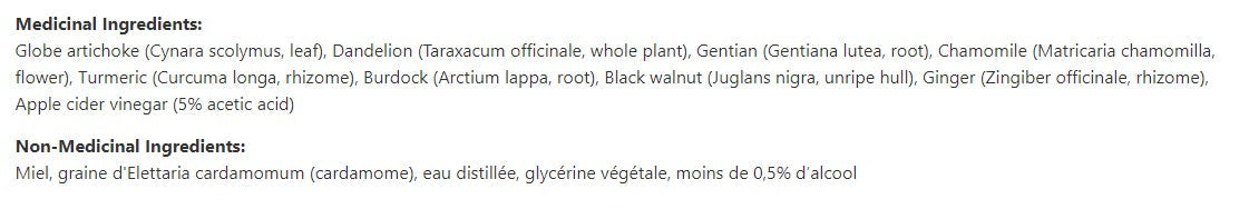 L’indigestion et les ballonnements sont des symptômes courants de problèmes digestifs ou d’une digestion lente. Notre Canadian BittersMD + Vinaigre de cidre de pomme associe un spectre de plantes amères soigneusement extraites aux vertus du vinaigre de cidre de pomme pour former un tonique digestif traditionnel qui favorise la préparation et l’optimisation de la digestion, pour que vous puissiez profiter de vos aliments préférés.