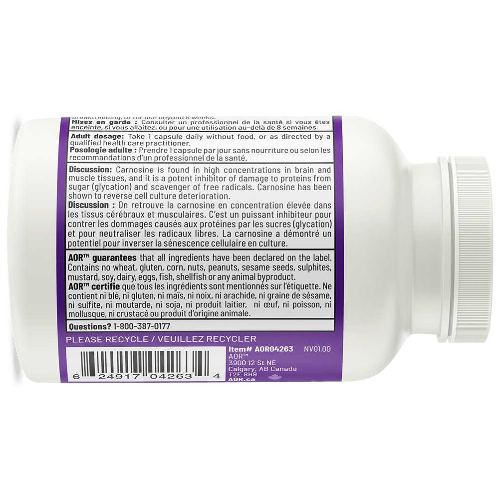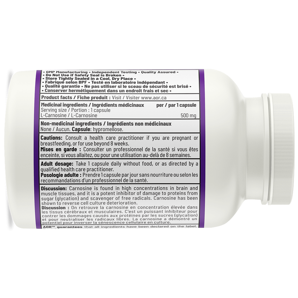 Carnosine-500 d’AOR est l’une des quelques rares formulations autonomes ce puissant antioxydant disponibles sur le marché et contenant une dose basée sur des preuves.