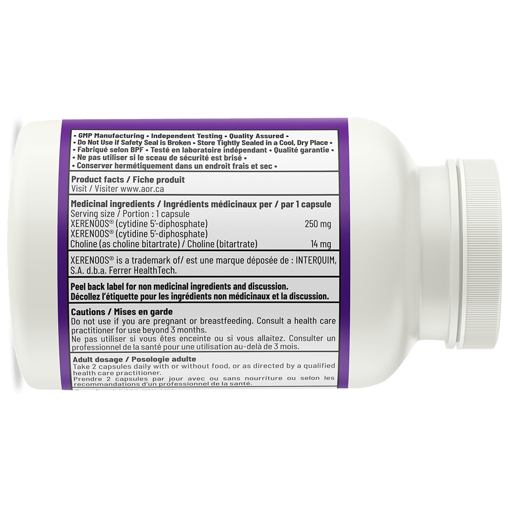 La citicoline est la cytidine-diphosphate-choline ou CDP-choline, un nutriment qui joue un rôle important dans la production de phospholipides qui font partie intégrante des membranes cellulaires. L’équilibre des phospholipides dans les cellules du cerveau est essentiel à son bon fonctionnement. La citicoline soutient à la fois la synthèse de nouveaux phospholipides et l’utilisation efficace des phospholipides des aliments ou des suppléments pour favoriser l’équilibre de la structure du cerveau. La citicoline augmente également la production et la libération de neurotransmetteurs importants comme la sérotonine et l’acétylcholine.