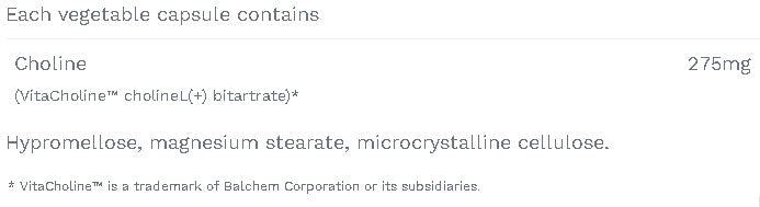 275 mg de choline par gélule dans le sel de bitartrate de choline hautement biodisponible pour soutenir la santé du foie, le développement neurologique du fœtus pendant la grossesse et la fonction cognitive chez les personnes âgées.