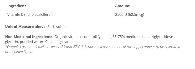 Cyto-D3 2500IU - gélule est conçu pour aider à la prévention des carences en vitamine D3. Chaque gélule fournit 2500 UI de vitamine D3 stable dans une base d'huile de noix de coco biologique pour favoriser une absorption et une biodisponibilité optimales.