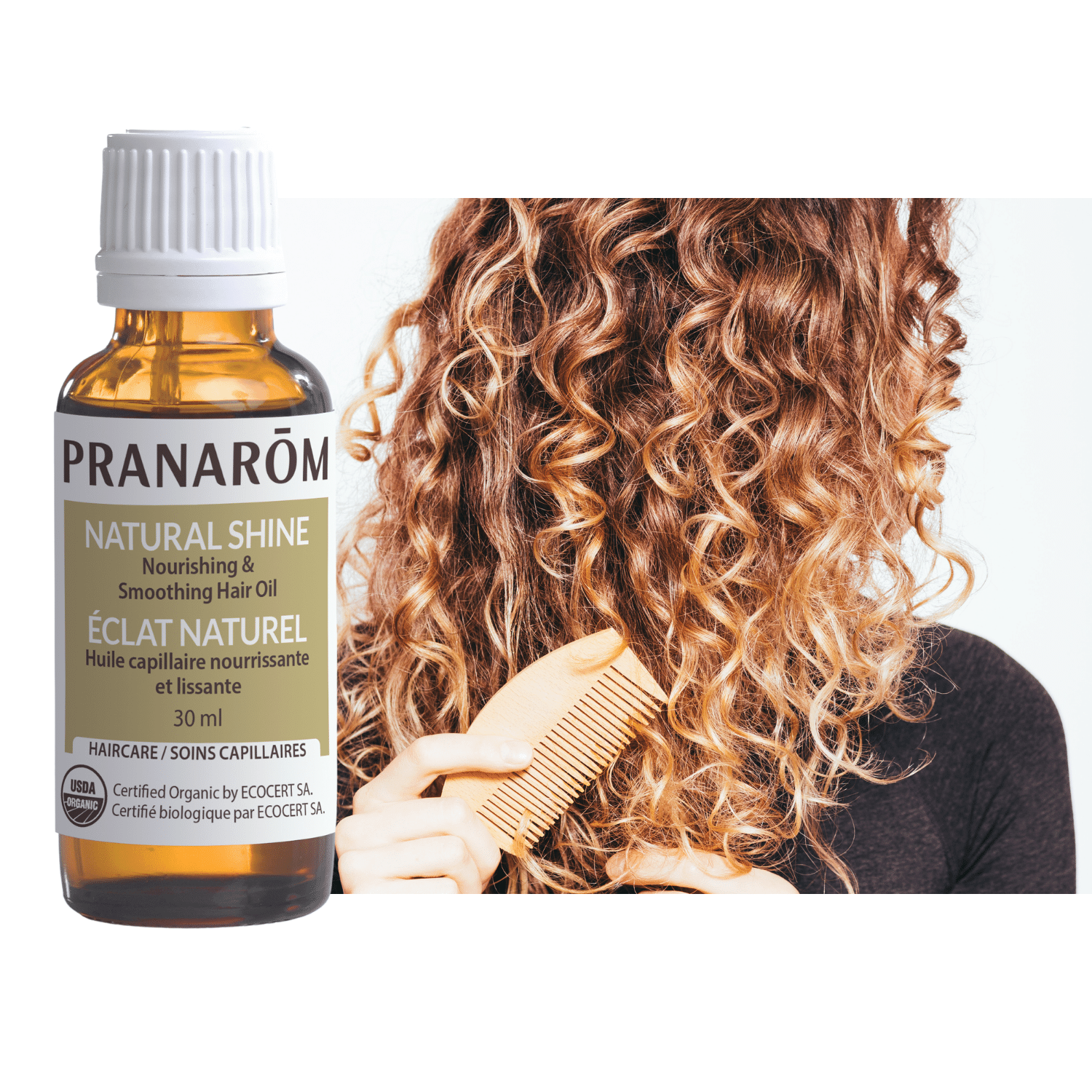Éclat naturel est une formule légère d’huile d’argan, de ricin et de noix de coco pour hydrater et lisser la cuticule (l’enveloppe externe du cheveu), en plus de sceller l’humidité afin de lutter contre la sécheresse et les frisottis.