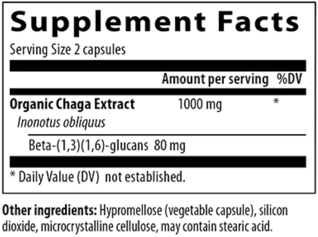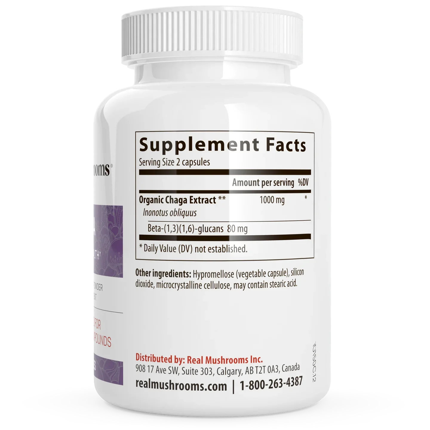 Jusqu'à récemment, le Chaga ne pouvait pas être cultivé, mais maintenant en Finlande, ils inoculent des bouleaux avec ce champignon. Le Chaga cultivé en laboratoire ne se développe pas en sclérothium et comme il ne pousse pas sur le bouleau mais sur le grain, il ne contient pas les composés médicinaux importants qui proviennent du bouleau. L'extrait de Real Mushroom Siberian Chaga est récolté à l'état sauvage en Russie et testé par des laboratoires tiers pour les composés actifs bêta-D-glucans qui sont la quintessence de nutriments pour le système immunitaire.