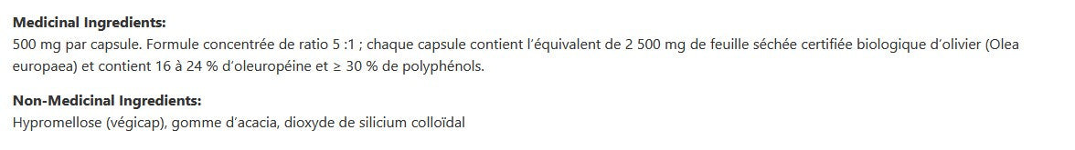 L’olive sous la forme d’huile fait partie des piliers d’une alimentation favorable à la santé cardiaque. Cette vertu s’explique par son fort contenu en polyphénols. Ce que l’on sait moins est que la feuille d’olivier est beaucoup plus riche que l’huile d’olive en ces composés bénéfiques, surtout l’oleuropéine. Les chercheurs l’ont confirmé par les résultats de leurs travaux : la feuille d’olivier possède d’exceptionnelles propriétés d’abaissement de la pression sanguine ainsi que des vertus cardioprotectrices, en sus d’être antimicrobienne, anti-inflammatoire, antioxydante, et neuroprotectrice. Notre produit contient un extrait de feuilles d’olivier fortifié qui renferme le pourcentage idéal d’oleuropéine ainsi que la synergie à spectre complet de la plante entière. Nous n’utilisons pas de substances d’extraction chimiques agressives.