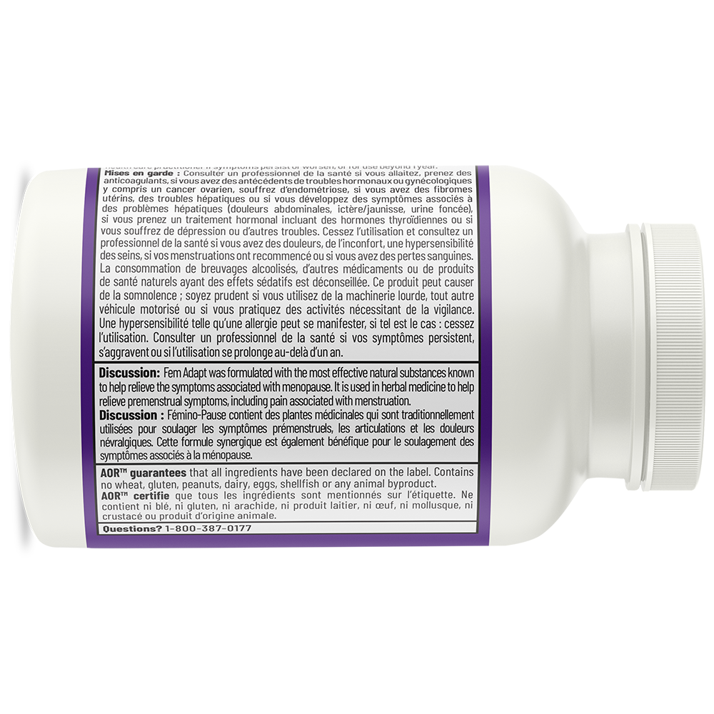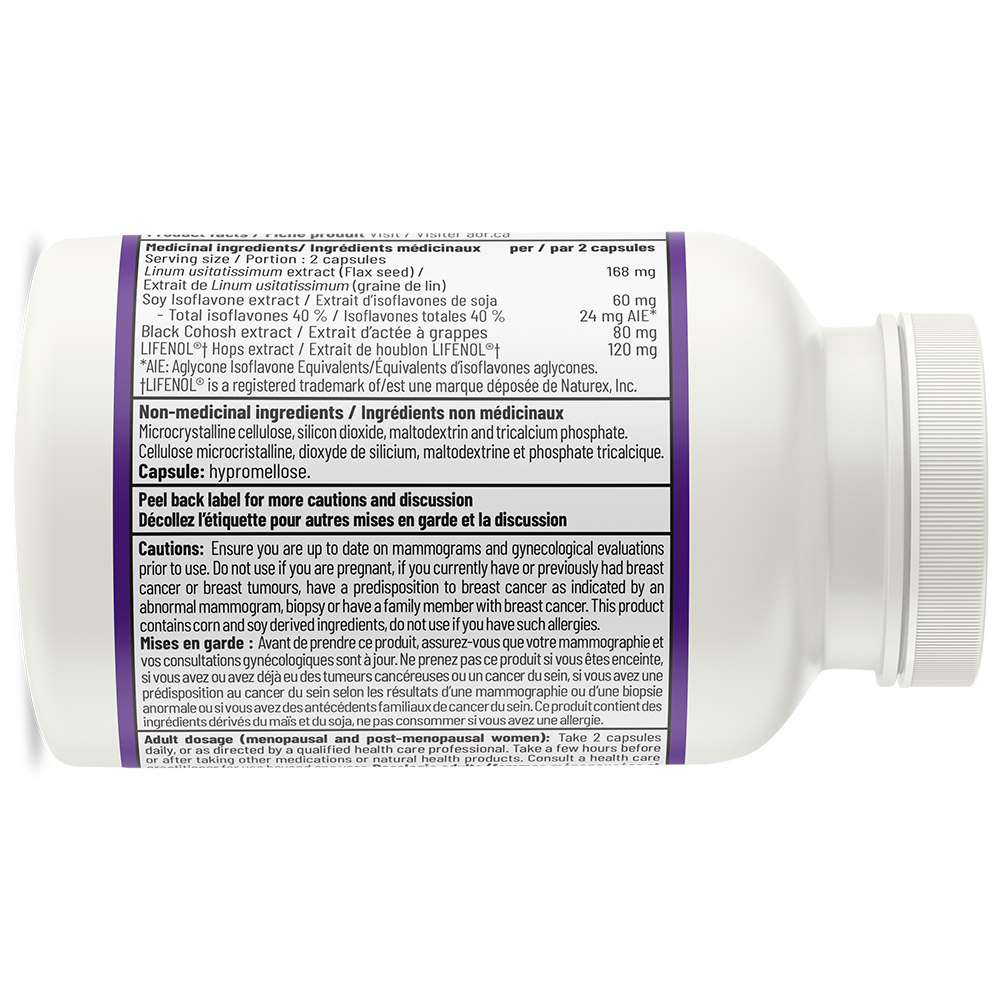 Fémino-Pause est la formule originale d’AOR pour la ménopause et est particulièrement utile pour soulager les bouffées de chaleur. Formulé avec des substances naturelles éprouvées pour aider à soulager les symptômes associés à la ménopause, il contient des lignanes de lin, des isoflavones de soja, de l’actée à grappes noires et un extrait de houblon standardisé pouvant agir de manière synergique pour réduire la gravité et fréquence des bouffées de chaleur et autres problèmes liés à la ménopause.