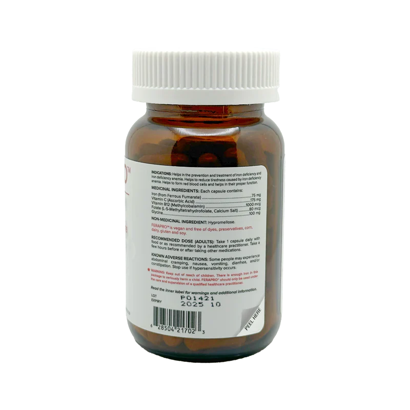 Ferapro s'engage à la pureté et ne contient qu'un seul ingrédient non médicinal, l'hypromellose, une fibre à longue chaîne d'origine végétale. Ferapro est végétarien, sans soja, sans produits laitiers, sans gluten et sans maïs. Ferapro ne contient pas d'agents de remplissage, de liants, de conservateurs ou de colorants.