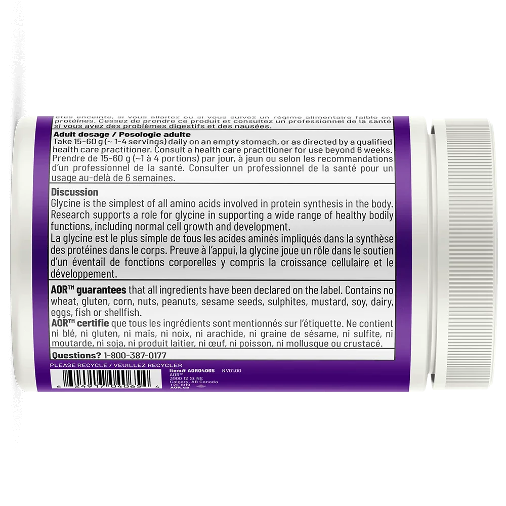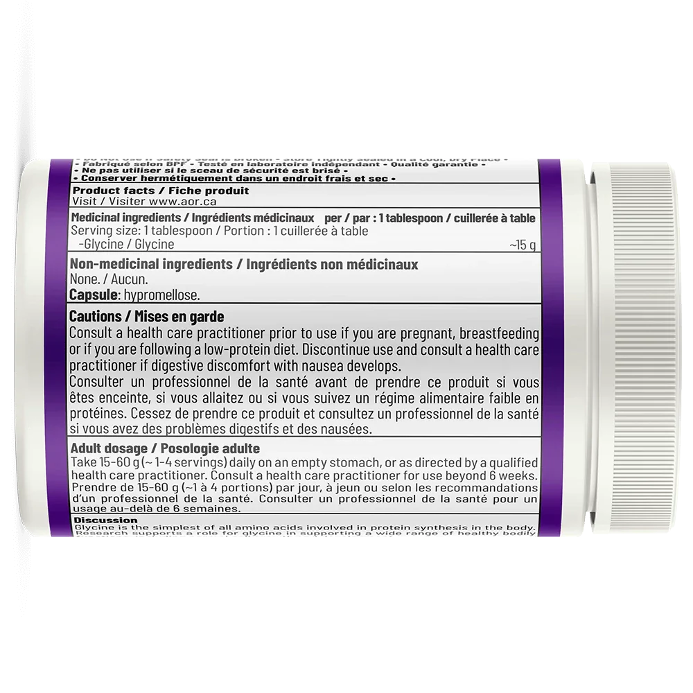 Ce supplément est destiné aux amateurs de sport, athlètes, passionnés d’antivieillissement, personnes souffrant de troubles du sommeil et à celles à la recherche d’un supplément unique offrant une multitude d’avantages. La glycine peut également favoriser la bonne humeur chez les personnes souffrant de troubles mentaux. Glycine d’AOR est offert sous une forme pratique, en poudre; ce qui facilite la prise de doses élevées.