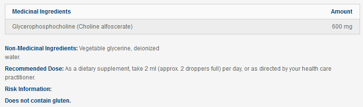 La glycérophosphocholine (GPC, également connue sous le nom de L-alpha-glycérylphosphorylcholine ou choline alfoscérate) est une source de choline présente en petites quantités dans divers aliments (dont le lait maternel) ainsi que dans toutes les cellules humaines. Le GPC est une molécule hydrosoluble et s’avère être une source de choline plus efficace que la choline ou la phosphatidylcholine (PC) provenant de l’alimentation ou de la supplémentation.