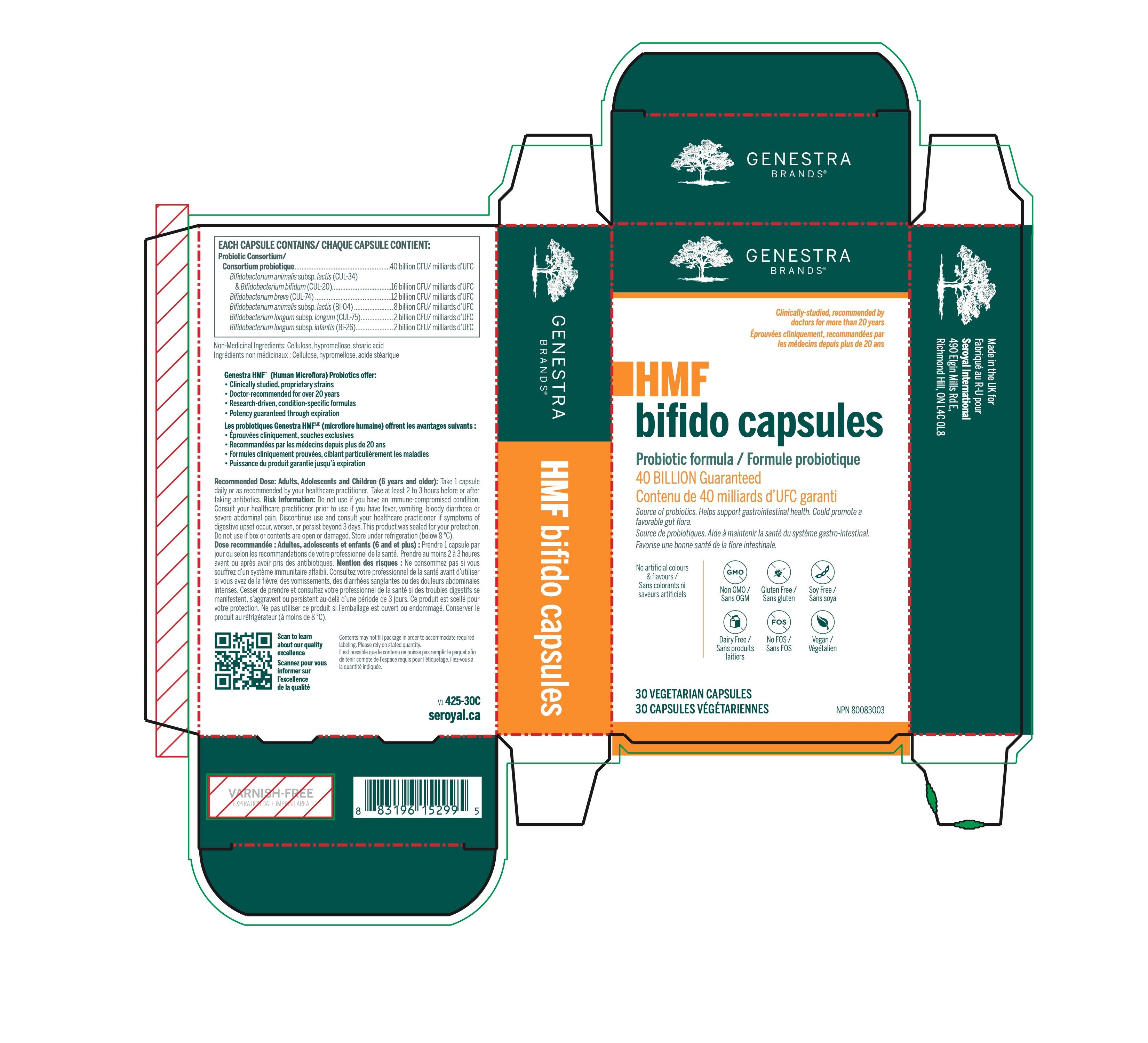 HMF Bifido Capsules procure six souches de Bifidobacteria brevetées pour soutenir la colonisation probiotique du gros intestin. Les Bifidobacteria sont normalement présentes dans l'intestin de la naissance à la vieillesse, où elles jouent un rôle important dans la santé gastro-intestinale. Les Bifidobacteria contribuent à la fermentation des glucides dans le gros intestin et à la production d'importants acides gras à chaîne courte (AGCC), notamment l'acétate et le lactate. Bien qu'elles soient le genre le plus abondant présent dans les intestins des nourrissons en bonne santé, les concentrations de Bifidobacteria diminuent avec l'âge, les plus fortes baisses étant observées chez les personnes âgées. Selon les recherches cliniques, la supplémentation en Bifidobacteria favorise une composition saine de la flore intestinale et soutient la santé gastro-intestinale. Le produit HMF Bifido Capsules fournit des souches probiotiques très recherchées telles que Bl-04, ainsi que CUL-34 et CUL-20, dont les essais cliniques ont démontré qu'elles contribuent au maintien d'une flore intestinale favorable.