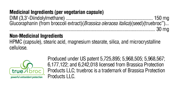 Hormone Protect utilise une approche à double action pour soutenir la santé des tissus sensibles aux œstrogènes. Premièrement, il fournit du diindolylméthane (DIM) pour favoriser un métabolisme sain des œstrogènes et créer un meilleur équilibre des métabolites des œstrogènes (2-OH, 4-OH, 16alpha-OH) grâce à l'induction de l'enzyme de phase I du cytochrome P450 et à la promotion de la 2-hydroxylation. Deuxièmement, l'action du DIM est complétée par l'apport de sulforaphane glucosinolate (SGS), qui protège les tissus contre le stress oxydatif incontrôlé et soutient de manière unique la phase II de détoxification des métabolites œstrogéniques nocifs (par exemple, les quinones œstrogéniques) et des xéno-œstrogènes. Ces actions peuvent être importantes pour la santé des tissus sensibles aux œstrogènes, tels que ceux du sein, de l'utérus, du col de l'utérus et de la prostate.