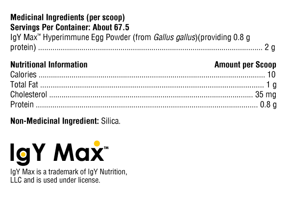 transféré au jaune d'œuf, parallèlement à la façon dont les immunoglobulines humaines (IgG) sont passés au placenta. De cette découverte, un nouvel aliment fonctionnel est né : le "œuf hyperimmun". IG 26 DF est le résultat d'une récolte spéciale d'œufs hyperimmuns et des techniques de traitement qui aboutissent à un polyvalent, riche en immunoglobuline, séché produit alimentaire à base d'oeuf hyperimmun pouvant être consommé comme complément alimentaire.