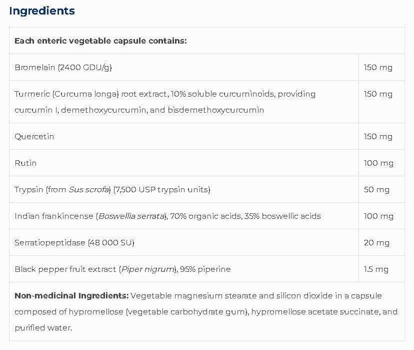 Les composants d’InflaCalm SAP en combinaison synergique maximisent la délivrance, l’absorption et, par conséquent, l’effet anti-inflammatoire de ces nutraceutiques et herbes bien étudiées.