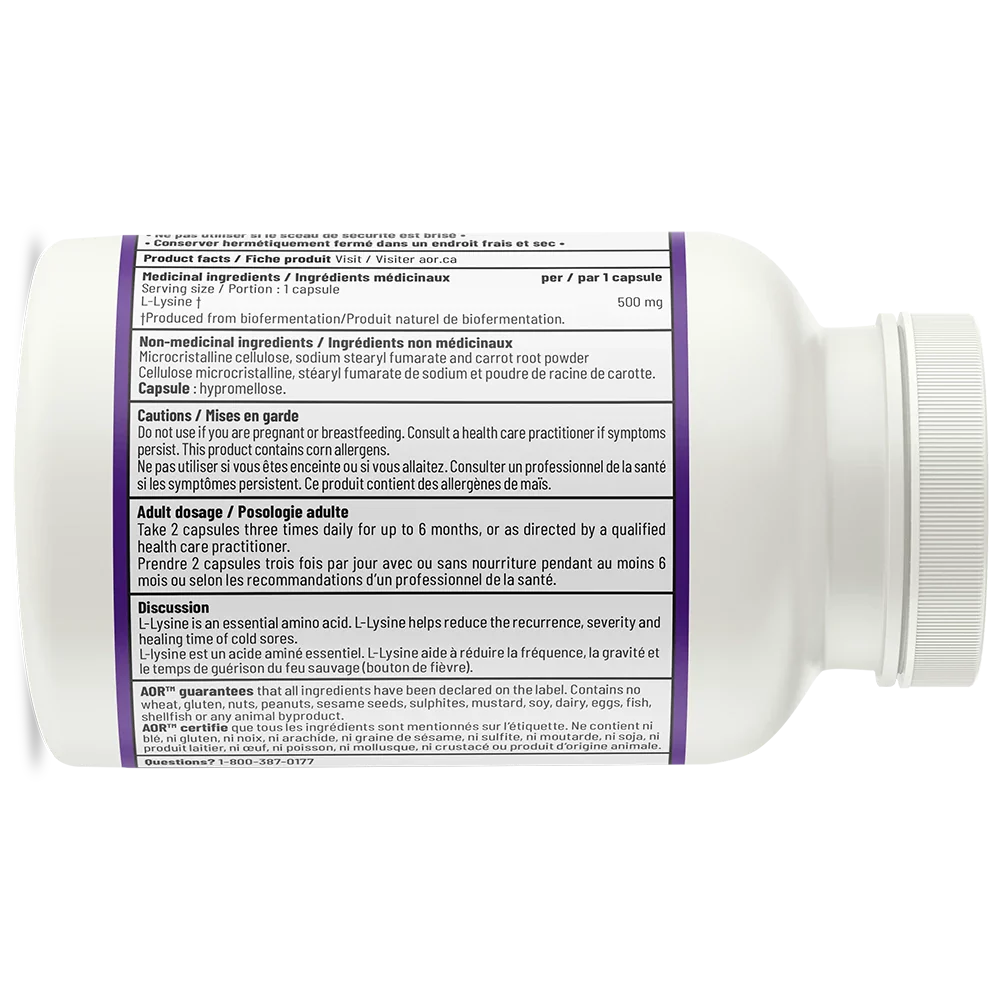 L-Lysine d’AOR fournit une dose sûre et efficace d’une L-lysine pure et de haute qualité.