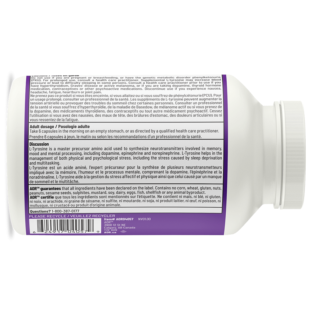 L-Tyrosine d’AOR fournit une dose sûre et efficace d’une L-tyrosine pure et de haute qualité.