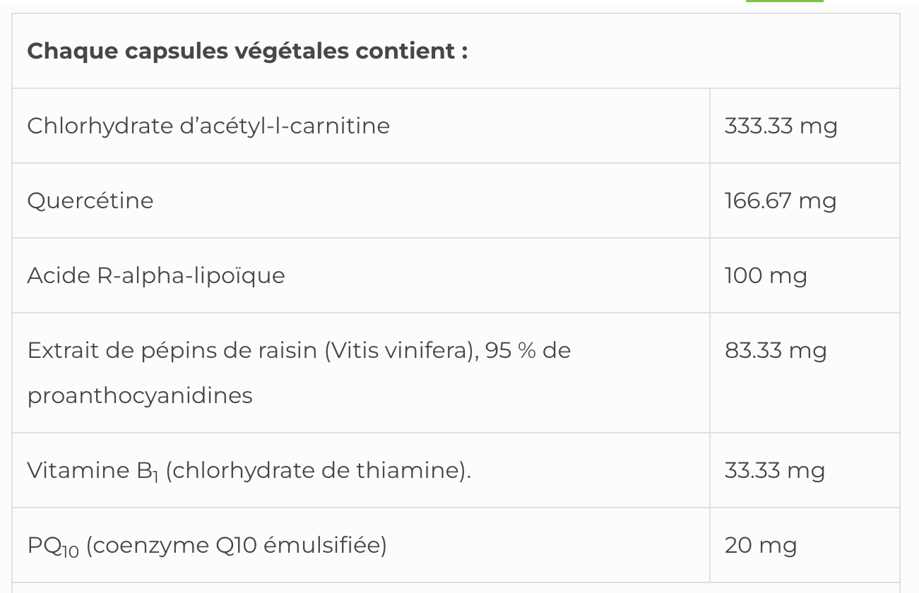 Dans l'ensemble, les preuves scientifiques suggèrent que ces ingrédients vitaux pourraient être bénéfiques pour la régulation de la fonction mitochondriale et du métabolisme énergétique, et pourraient être utiles pour promouvoir la santé cardiovasculaire, neurologique et rétinienne.