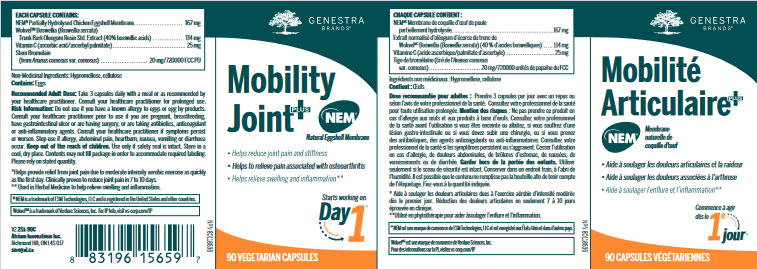 Les autres ingrédients de cette formule comprennent le boswellia Wokvel™, la broméline et la vitamine C. Le Boswellia serrata est traditionnellement utilisé en médecine ayurvédique et en phytothérapie pour traiter l'enflure et l'inflammation. La broméline est une aide digestive bien connue dont la capacité à réduire l'enflure et l'inflammation a été démontrée lors d'essais cliniques. La vitamine C aide à protéger contre les effets néfastes du stress oxydatif causé par les radicaux libres et offre un soutien aux défenses antioxydantes du corps. Mobility Joint Plus NEM® est une formule innovante qui constitue une stratégie sûre et efficace pour réduire la douleur, la raideur, l'enflure et l'inflammation des articulations. Cette formule permet également de réduire la douleur et l'inconfort liés à l'exercice physique, ce qui vous permet de reprendre votre routine d'entraînement et de profiter des avantages d'un exercice régulier.
