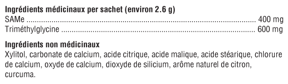 La S-adénosyl-L-méthionine (SAMe) est une substance naturelle formée dans l'organisme à partir de l'acide aminé méthionine et de la "molécule d'énergie" adénosine triphosphate (ATP). La formation de la SAMe est catalysée par la méthionine adénosyltransférase et dépend de cofacteurs tels que la vitamine B6, la vitamine B12, les folates et le magnésium. La SAMe a été étudiée en tant que nutriment de soutien pour la santé du foie, le confort des articulations, les réactions métaboliques et l'humeur saine.