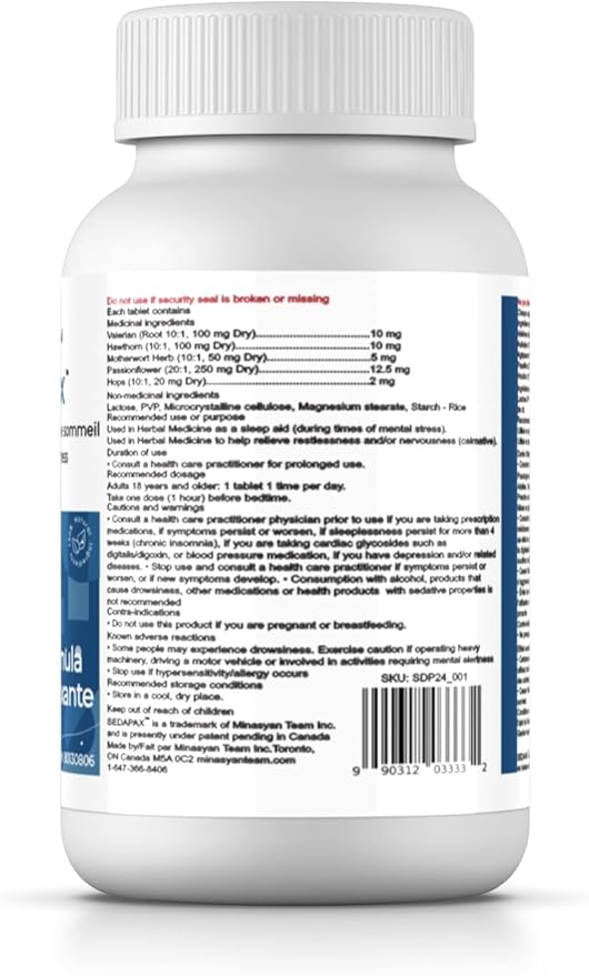 La formule relaxante Sedapax est conçue pour réduire le stress et la tension, réguler le sommeil et favoriser la relaxation grâce à un mélange unique d'ingrédients Fabriqué à partir d'un mélange distinctif d'herbes naturelles, y compris les racines de valériane, l'agripaume, l'aubépine, la passiflore et le houblon, Sedapax offre une solution holistique pour soulager le stress et la tension tout en favorisant une relaxation profonde et un sommeil réparateur.