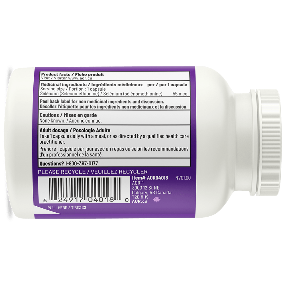 AOR offre du sélénium sous forme de sélénométhionine, une forme de sélénium moins toxique et plus puissante. La force du sélénium dans la lutte contre le cancer est liée à sa capacité à être converti en méthylsélénol. Le SeMet est directement et facilement converti en cet important métabolite, ce qui en fait l’une des meilleures formes de sélénium disponibles. SeMet d’AOR vous est fourni en tenant compte de l’apport nutritionnel recommandé (ANR) qui est de 55 mcg par capsule, pour 90 capsules par bouteille, permettant ainsi des options de dosage flexibles.