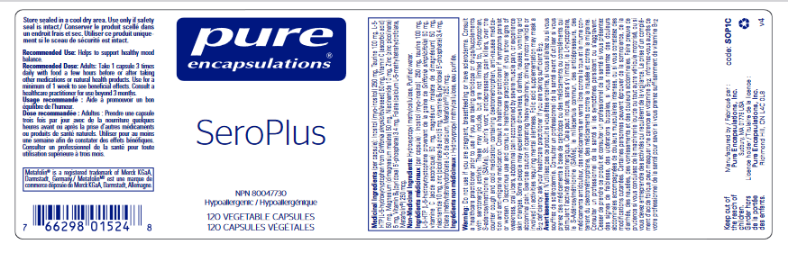 SeroPlus a été créé par Pure Encapsulations en collaboration avec le Dr James Greenblatt dans le cadre de l'Integrative Mental Health Series, une gamme de produits basés sur des découvertes scientifiques et des décennies d'expérience clinique. SeroPlus contient du 5-HTP pour soutenir un bon équilibre de l'humeur en fournissant des éléments essentiels à la sérotonine. En aidant à former la sérotonine, le 5-HTP équilibre l'activité de la sérotonine dans le cerveau, favorisant ainsi le bien-être émotionnel. Autre élément clé de chaque formulation de cette série : l'inclusion de cofacteurs comme la vitamine B6, le zinc et la Metafolin® L-5-MTHF. L-5MTHF est une forme de folate qui traverse facilement la barrière hématoencéphalique. Ces nutriments sont souvent présents en quantité insuffisante en raison de la prise de médicaments, de régimes alimentaires inadéquats et de l'exposition à des environnements toxiques, ce qui compromet la capacité à métaboliser efficacement les nutriments. Avec le zinc, la vitamine B6 est un cofacteur dans le métabolisme des acides aminés, y compris le métabolisme du 5-HTP en sérotonine.