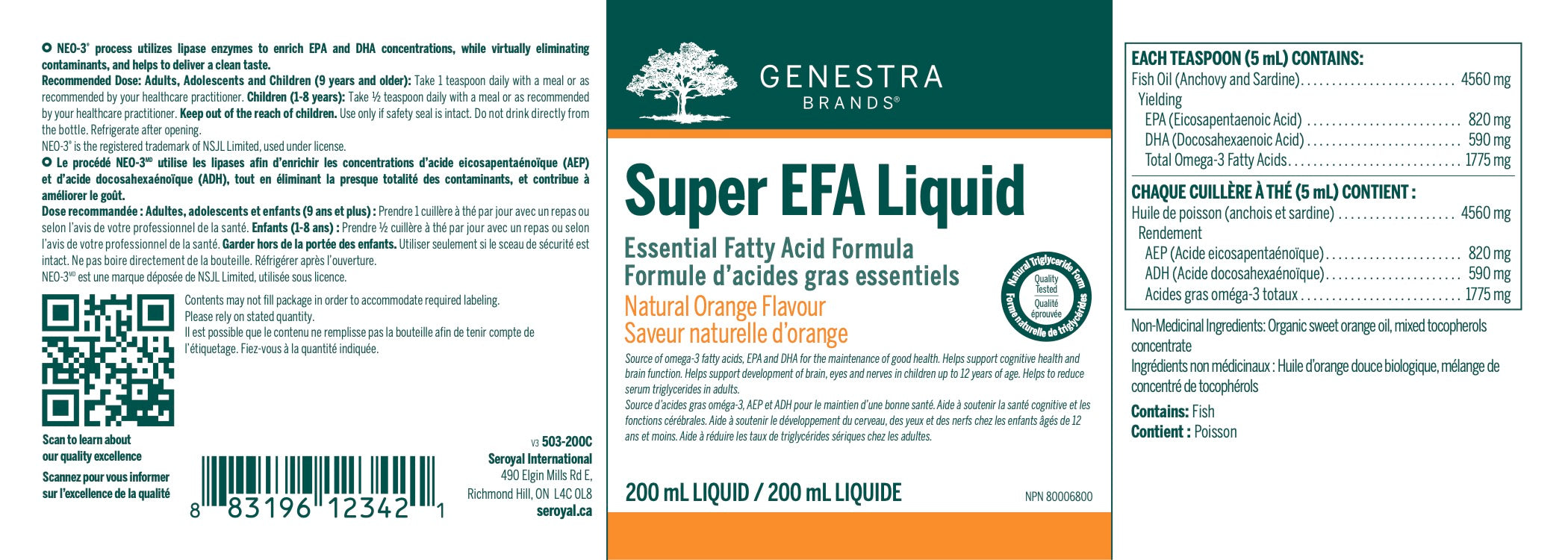 Le liquide super AGE fournit 1410 mg d’EPA et de DHA par dose d'une cuillère à thé et présente un ratio EPA:DHA de 1.3:1, lequel est idéal pour aider à réduire les taux de triglycérides sériques. Lors d'un essai clinique contrôlé par placébo auquel participaient 312 adultes, des suppléments quotidiens de 1800 mg d'EPA et de DHA (dans un ratio de 1.5:1) administrés pendant 1 an ont permis de réduire de 16.5% les taux de triglycérides sériques.