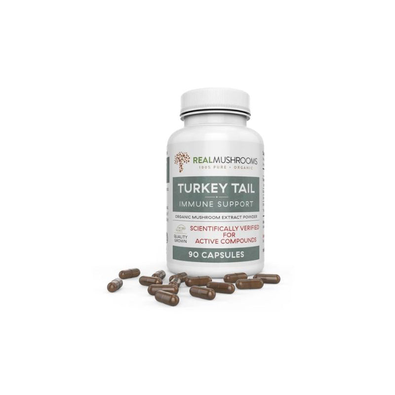 Le champignon Turkey Tail, ou Trametes Versicolor, est l'un des champignons médicinaux les mieux étudiés. Il pousse sur des grumes mortes dans le monde entier et tire son nom parce que ses anneaux bruns et bruns ressemblent aux plumes de queue d'une dinde. Dans la MTC (médecine chinoise traditionnelle), la queue de dinde a été utilisée pour traiter les maladies pulmonaires, et au Japon, le médicament PSK, qui est dérivé de la queue de dinde, a été utilisé pour renforcer le système immunitaire lorsqu'il est administré avec un traitement standard du cancer.