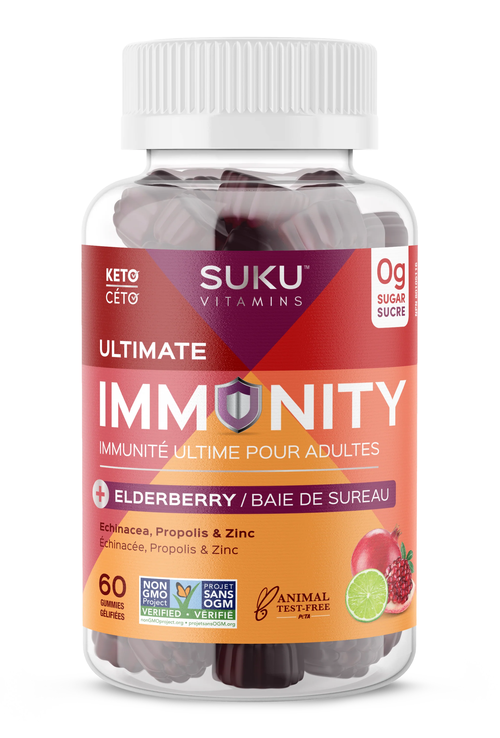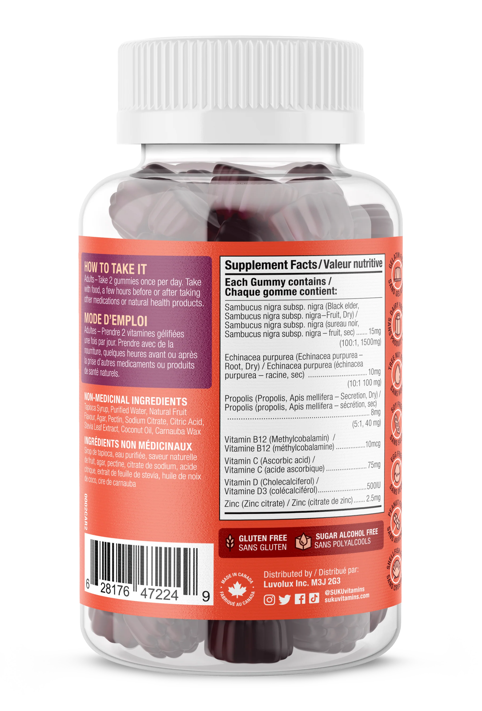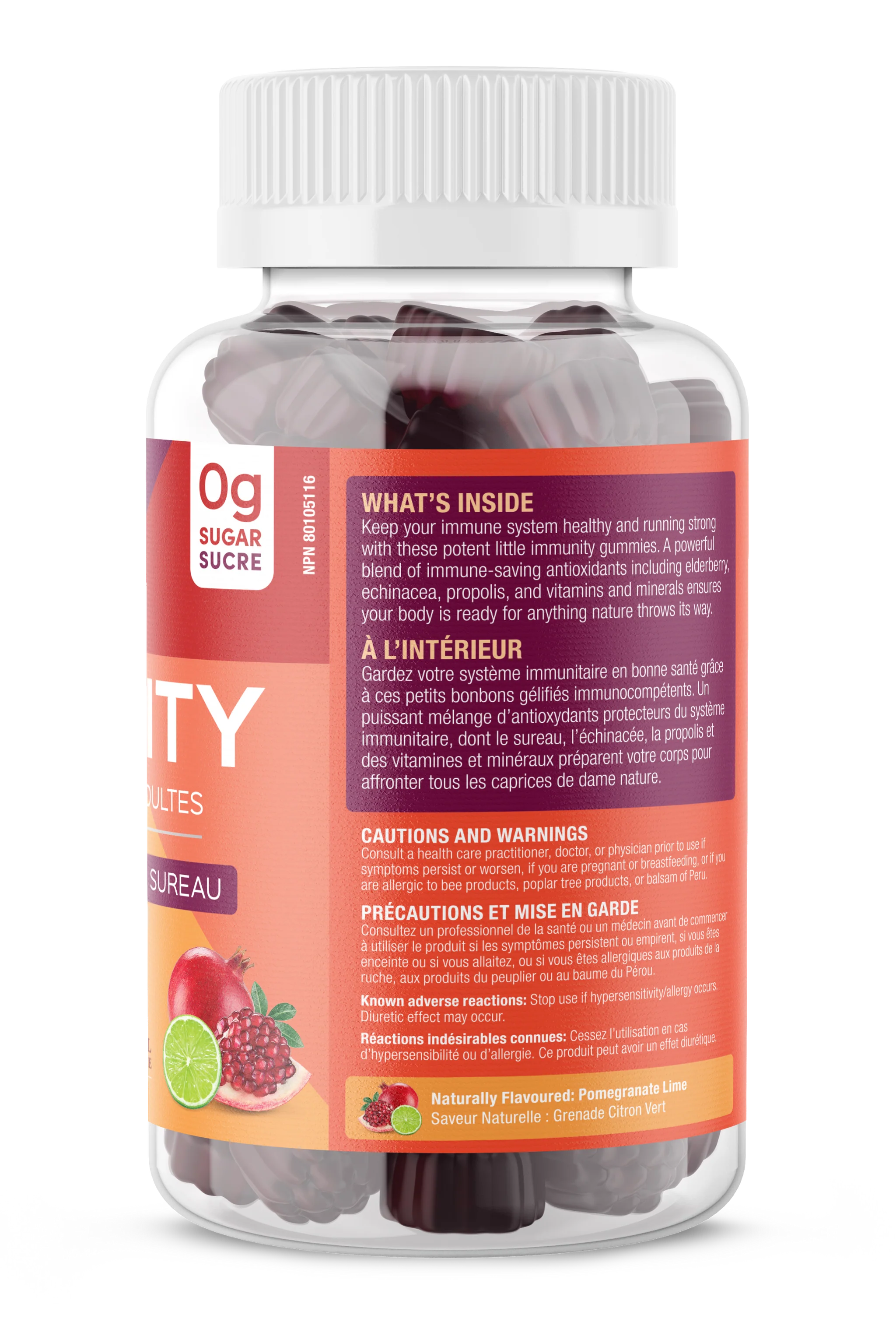 Gardez votre système immunitaire en bonne santé et en pleine forme grâce à ces puissants petits gélifiés d'immunité. Un puissant mélange d'antioxydants, dont le sureau, l'échinacée et la propolis, ainsi que des vitamines et des minéraux, garantit que votre corps est prêt à affronter tout ce que la nature lui réserve. Ces gélifiés sont très efficaces pour renforcer la fonction immunitaire et soulager les symptômes du rhume et des infections des voies respiratoires supérieures.