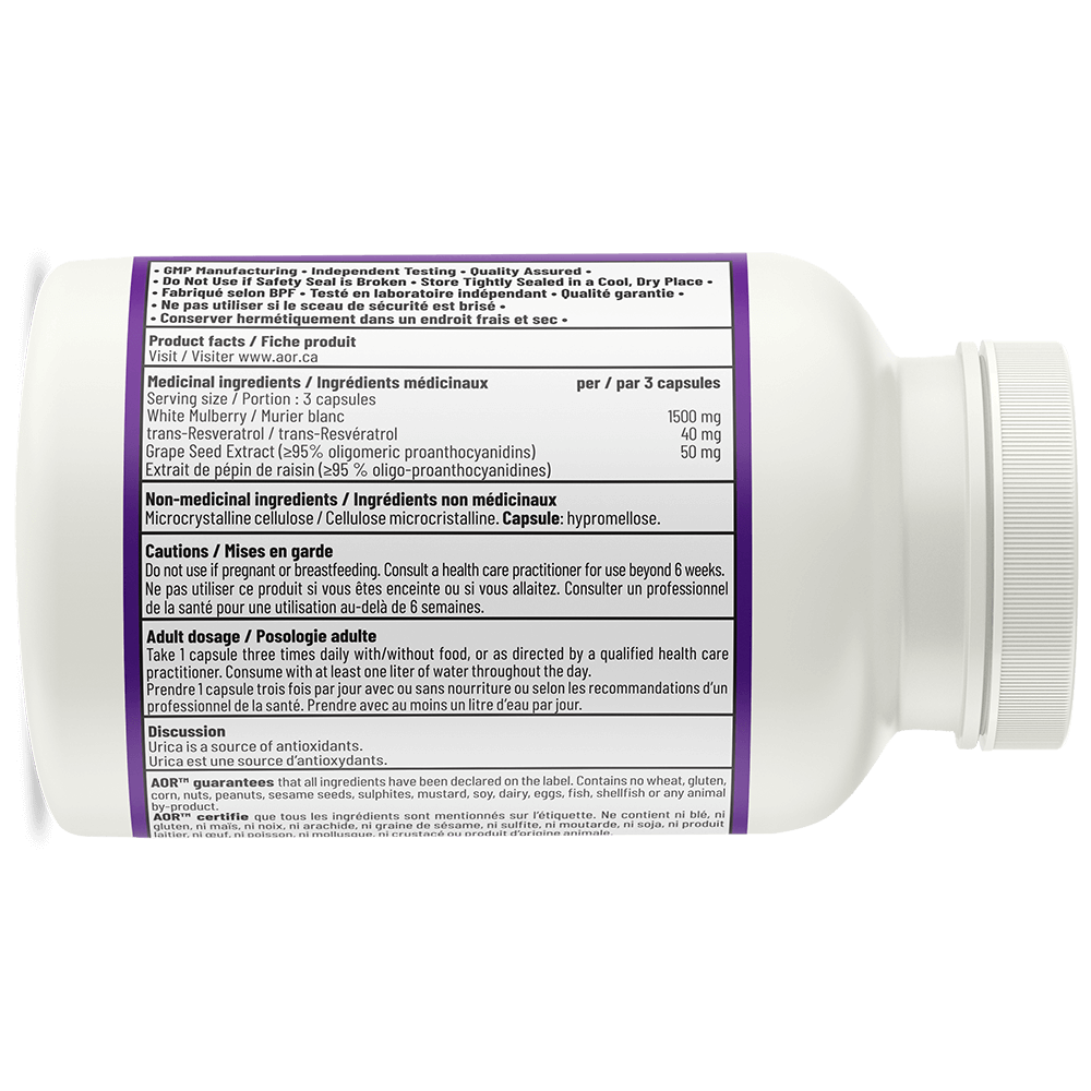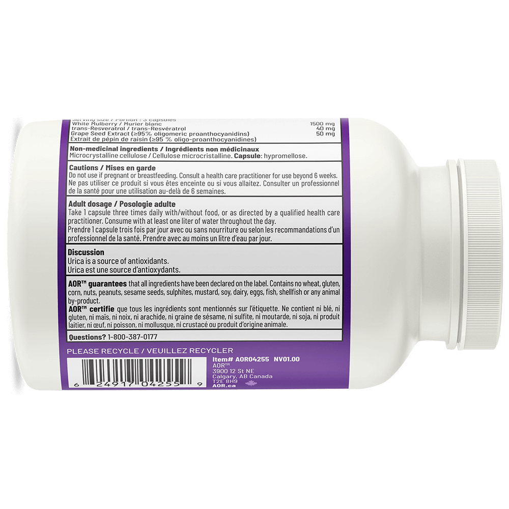 Urica a été conçu pour aider à réduire des niveaux d’acide urique dans le corps, réduisant ainsi la fréquence et la gravité des crises de goutte. Cette formule peut également être bénéfique pour les personnes ayant un taux élevé d’acide urique ou une fonction rénale altérée. Urica contient une forte dose d’extrait de mûrier riche en morine et des doses de soutien de resvératrol et d’extrait de pépins de raisin. La morine agit sur les reins pour favoriser l’excrétion de l’acide urique par l’organisme et contribue également à la réduction de sa production en inhibant l’enzyme xanthine oxydase qui transforme certains composés en acide urique. Les polyphénols issus du resvératrol et de l’extrait de pépins de raisin agissent également sur les reins et réduisent l’activité de la xanthine oxydase.