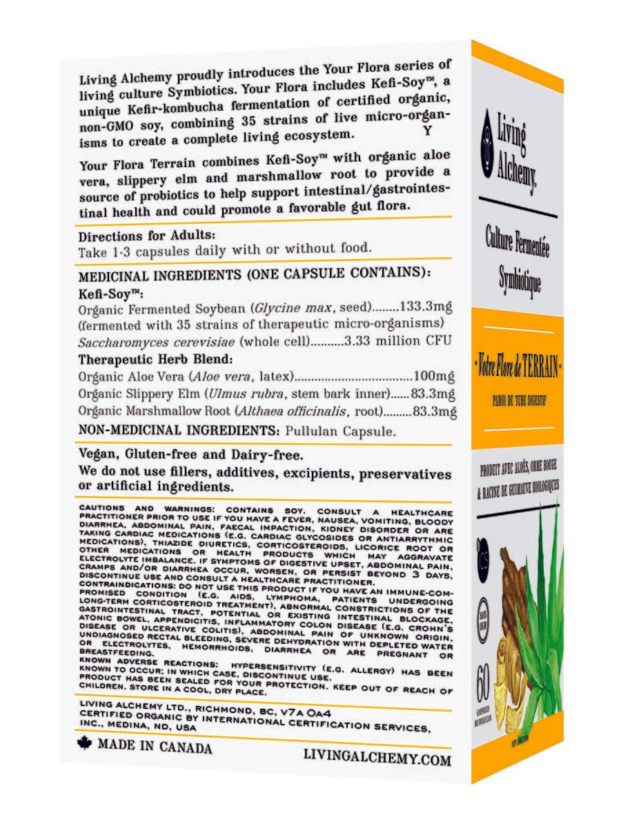 Votre Flore TERRAIN combine notre culture symbiotique vivante de diverses souches de micro-organismes avec de l’aloès, de l’orme rouge et de la racine de guimauve biologiques et s’adresse spécifiquement à ceux qui ont une muqueuse digestive compromise.