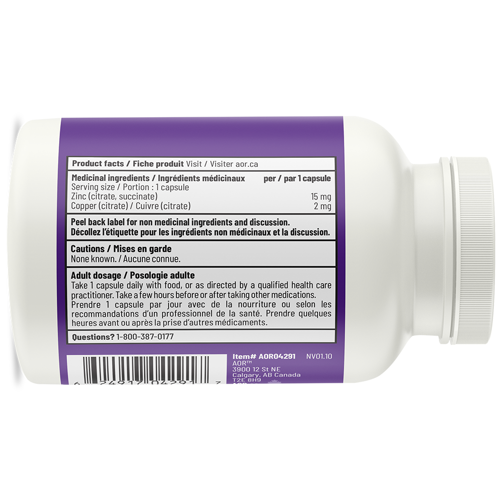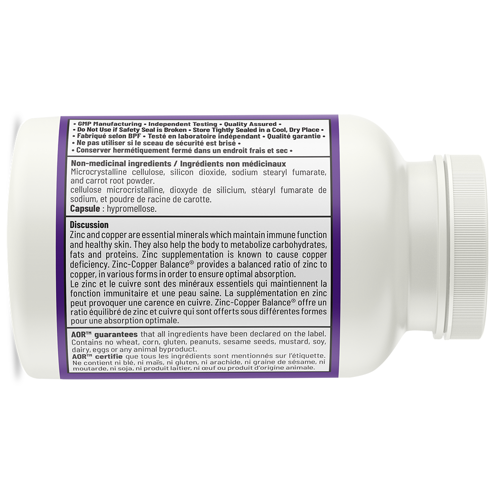 Bien que l’importance du zinc soit de plus en plus reconnue, le rôle crucial du cuivre dans notre santé a souvent été négligé. Une supplémentation excessive en zinc peut entraîner à elle seule une carence en cuivre, ce qui peut avoir de graves conséquences pour votre santé à long terme. Zinc-Copper Balance est le meilleur choix pour toute personne qui prend un supplément de zinc ou qui recherche une formule équilibrée et variée contenant ces deux minéraux essentiels. Zinc-Copper Balance d’AOR fournit un ratio zinc-cuivre équilibré et basé sur la recherche, chacun sous différentes formes afin d’assurer une absorption et une fonction optimales.